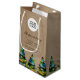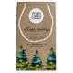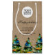 Sac cadeau petit Arbre de Noël avec texte personnalisé et logo. Fond beige rustique et arbre de Noël coloré à l'aquarelle. Insérez votre logo dans le modèle et personnalisez le texte, le nom de l'entreprise, l'adresse et les coordonnées. Promotion commerciale et cadeau de vacances pour vos clients et partenaires commerciaux.