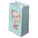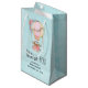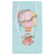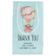 Sac cadeau Merci avec un design adorable avec une illustration aquarelle. Une montgolfière ornée de jolies fleurs rouges et roses. Un mignon petit ours blanc est assis dans le panier. Arrière - plan bleu clair