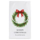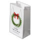 Sac cadeau de Noël moderne avec un design simple et minimal avec une couronne d'aquarelle, avec le message de bienvenue "Joyeux Noël" et votre nom de famille.