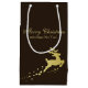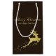 Petit Sac Cadeau Arbre de Noël doré avec rennes