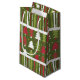 Petit Sac Cadeau Arbres et bandes rouges, blancs et verts de Noël