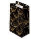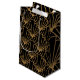 Ce sac cadeau a un design Art Déco de diamants et de triangles en or sur un champ de noir.