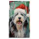Design de Noël coloré et joyeux avec un Collie barbu portant un chapeau de Père Noël.