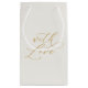 Un élégant sac-cadeau en ivoire pour mariage présentant une délicate calligraphie « Avec amour » dans une tonalité neutre douce.