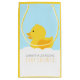 Prévoyez-vous un bain à bulles ou un baby shower à thème canard ? Le sac cadeau pour Baby shower en caoutchouc jaune Ducky est un choix adorable pour les baby showers sans sexe. Il présente un canard jaune doux flottant dans des bulles de bain. Ce sac cadeau vous aidera à ajouter cette touche spéciale à vos faveurs de fête et cadeaux de baby shower. N'oubliez pas de cravate le thème de la fête du canard et de coordonner les produits conçus par Enchantfancy Design Company.
