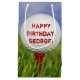 Boule de golf blanc sur tee rouge dans l'herbe avec le ciel bleu. Le nom peut être modifié.