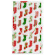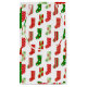 Ce sac cadeau a un design de Noël de bas jonchés avec différents motifs sur eux.