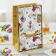 Présentez vos cadeaux en style avec notre petit sac cadeau chic de style vintage, personnalisé avec du texte sur le devant, du texte et de la photo sur le dos. Le design du sac cadeau comprend un dessin intemporel de la Couronne royale d'or Queen Bee à l'encre noire. Dessiné à la main par Nathalie Portet. Cette illustration présente des détails complexes d'une reine royale royale et de sa couronne d'or royale, entourée de charmants éléments floraux. Le texte à l'intérieur des rouleaux dorés de style vintage est personnalisable. Les côtés du sac sont ornés d'une abeille fantaisiste et d'un motif de couronne d'or contre un arrière - plan doré chatoyant, ajoutant une touche élégante à toute occasion. Que ce soit pour la fête des mères, les anniversaires, les anniversaires, les douches nuptiales ou d'autres événements spéciaux, ce sac cadeau ravira vos proches.