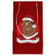 Sac cadeau avec l'illustration d'un jeune Africain-Américain souriant avec un costume et un casquette du Père Noël rouge et blanc ; design de vacances de Noël avec modèle texte personnalisable pour votre nom ou message