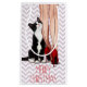 L'illustration magnifique du chat noir et blanc se penchant contre les jambes d'une femme, sur l'arrière - plan de motif de chevron, a conçu par l'artiste Maryline Cazenave.
