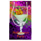 Ajoutez un contact lunatique à votre cocktail de Halloween avec cette caractéristique de conception d'amusement un citrouille malfaisant été perché sur le dessus d'un verre de cocktail de tige fantomatique décrite sur les sacs ordonnés de cadeau. L'arrière - plan tournant coloré de lumières est très de fête. Des noms d'hôte et le texte de partie peuvent être personnalisés dans les modèles inclus à la page de produit.