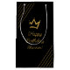 Célébrez son anniversaire avec cet élégant sac cadeau noir avec une couronne princesse d'or et des rayures. Personnalisez avec son nom pour une fête d'anniversaire mémorable !