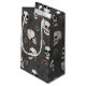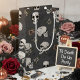 Dessiné à la main dans l'encre noire, ce sac cadeau présente un beau motif de crânes, de roses et de toiles d'araignée dans des tons crème et rougis, le tout contre un élégant arrière - plan gris foncé.