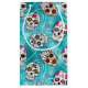 Un sac cadeau coloré pour les festivités du Jour des Morts, avec une variété de crânes de sucre décoratifs avec des accents de fleur et tourbillon sur un arrière - plan turquoise à effet texturé. Si vous préférez, le calque de texte "Feliz Dia de los Muertos" peut être supprimé pour une conception uniquement motif. Cherchez ID725 pour voir d'autres choix de couleurs et produits avec ce motif amusant.