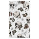 Dessiné à la main dans l'encre noire, ce sac cadeau présente un beau motif de crânes, de roses et de toiles d'araignée dans des tons crème et rougis, le tout contre un élégant arrière - plan noir et blanc.