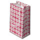 Pink and white crocheted teddy bear girl's baby shower gift bag. An adorable pink teddy bear crocheted with pink and white yarn adds the sweetest touch.
