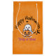 Make your Halloween treats stand out with this bright orange, glossy gift bag! It features an adorable graphic of a happy little ghost riding a jack-o'-lantern with the message, "Happy Halloween Trick or Treat." It's the perfect spooky-but-sweet packaging for party favors, gifts, or handing out candy!