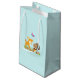 Sac cadeau avec une jolie illustration montrant un cerf de bébé et un petit écureuil tenant une glande et un papillon volant au-dessus de leur tête. Ces adorables créatures boisées se tiennent debout sur une herbe avec quelques champignons fantaisistes à leurs pieds.