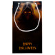 Faites de votre fête d'Halloween une fête extra éffrayante avec ce sac cadeau étrange, avec un visage démon foncé avec des yeux orange vif et une fumée orange tourbillonnante sur un arrière - plan noir. Parfait pour remplir avec des gâteries, des faveurs de fête ou des cadeaux, ce sac personnalisable ajoute une touche de fraicheur à toute fête de maison hantée ou événement costumé. Idéal pour impressionner vos invités et rehausser votre décoration d'Halloween, ce sac cadeau est incontournable pour une célébration effrayante !