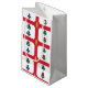 Sac cadeau avec le drapeau de Montréal, la ville la plus peuplée de la province de Québec, Canada. Drapeau blanc à croix rouge, pin blanc, fleur de lys bleu, rose rouge de Lancaster, shamrock et chardon