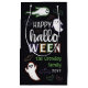 Sac cadeau Spooktacular heureux Halloween personnalisé avec votre nom dans une police verte éffrayante entourée de fantômes et chauves-souris dessinés à la main.