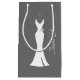 Sac cadeau Merci fait avec un arrière - plan gris classe. Illustration graphique d'une élégante robe blanche accrochée à un cintre. Design minimaliste simple.