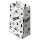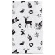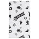 Un sac cadeau avec une répétition transparente en noir/blanc des éléments de Noël - bas, pain d'épice, flocons de neige, rennes, ornements de Noël, bougies, sapin de Noël, et les mots "Joyeux Noël" - en illustration. Il peut convenir à des occasions solennelles de Noël.
