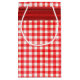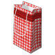 En vichy rouge et blanc avec arc et étiquette. Customisez le nom du destinataire sur la balise ovale.