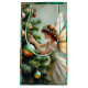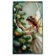 An enchanting Christmas gift bag with an illustration of a fairy or angel decorating a whimsical Christmas tree.