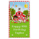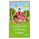 Ce sac cadeau mignon et amusant peut être personnalisé avec un nom ou un titre comme fille, petite-fille, nièce, ami etc. Il comprend une coiffeuse brune à la peau foncée à côté d'une grange rouge à vent coq. Il y a d'adorables animaux de ferme comme une vache, un cochon et une poule. Dans l'arrière - plan est un ciel bleu vif, pommiers, soleil, papillons et marguerites.