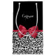 Personnalisez en ajoutant le nom de n'importe quelle fille à ce sac cadeau empreinte de léopard blanc et noir girly avec un joli ruban rouge vif attaché dans un arc élégant. Ce design poster de animal à la mode est une image imprimée à plat, et ne contient pas de ruban réel.