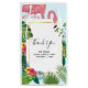 Un sac cadeau de remerciement avec un flamant rose mignon et capricieux. Entouré de feuilles tropicaux verts, de fleurs d'hibiscus rouges et jaunes. Un cadre de dégradé doré en forme de rectangle au centre.
