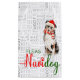 Un tricolore Australien Shepherd est assis avec un joli chapeau de Père Noël rouge et un foulard rayé rouge et blanc est prêt à souhaiter à Fleas Navidog à tout amoureux des chiens ou amoureux de l'animal qui adore la race australienne.