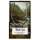 Merci à la fête sac cadeau avec une photo nature. Moody et beau paysage. Un pont de pierre isolé au bord d'une rivière animée avec une forêt et des montagnes entourant la région.
