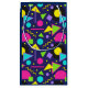 Ce sac cadeau présente des formes géométriques aux couleurs vives et vives sur un arrière - plan bleu marine profond. Il est disponible en 4 tailles différentes et a une ambiance rétro que nous adorons !