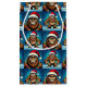 A funny Bigfoot Christmas gift bag with a comic book style pop art sasquatch smiling with a Santa and Christmas lights on.