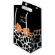 Un sac cadeau en girafe blanc et noir ceint avec un joli ruban orange attaché dans un arc élégant. Personnalisez ce design poster de animal tendance en ajoutant le nom de la fille du parti. Image imprimée plate, pas l'arc réel.