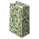 Ce sac cadeau festif en vert et or St. Patty's Day comporte un motif avec des pièces d'or irlandaises dessinées à la main et des shamrocks verts en encre noire et la phrase "Lucky You".