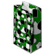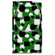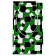 Ce sac cadeau a une conception Bauhaus de triangles, cercles, rectangles et pentagons en noir et blanc sur un champ de vert.