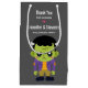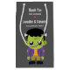 Halloween ou anniversaire merci sac cadeau avec une image d'Halloween amusante avec un monstre Frankenstein vert.