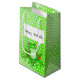 Mignonne grenouille verte sur le néon vert et blanc pois arrière - plan avec bulle vocale pour tout anniversaire d'âge. Le texte peut être modifié.