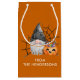 Halloween Gnome Trick ou Treat Gift Bag. Ce gnome d'Halloween, d'une rare beauté, avec un citrouille plein de friandises et de toiles d'araignées éffrayantes, est un complément parfait à vos gâteries d'Halloween. Vous pouvez personnaliser le sac cadeau avec votre ou vos nom(s) de famille au dos ou modifier le message pour convenir à votre style. Restez éffrayant et Bonne Halloween !