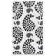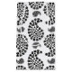 Un motif paisley noir et blanc formé par des empreintes de pattes de chien de différentes tailles.