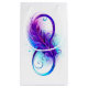 Infinity symbole with a beautiful feather painted in purple and blue bright colors on white background