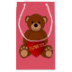 Une jolie photo vintage d'un peluche tenant un coeur avec "I Love You" écrit dessus, est présentée à l'avant et à l'arrière de ce petit sac cadeau. Ce sac cadeau coloré est parfait pour les petits ou les petits cadeaux pour la Saint-Valentin, les anniversaires et plus !