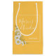 Joli sac cadeau mariage avec aquarelle blanc marguerites coin sur arrière - plan jonquille jaune avec blanc personnalisable blocs de texte dans les polices modernes
