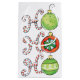 Illustration vintage adorable Joyeux dessin animé de Noël clip art vacances design de texte. Les mots "Ho Ho Ho" avec les lettres écrites dans des sucres de canne rayés rouges et blancs et des ornements de Noël en verre rond.