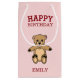 Le sac cadeau pour les enfants - il a un mignon ours en peluche marron sur un arrière - plan rose. Sac cadeau personnalisable - changer le nom. Vous pouvez également modifier le texte et utiliser le sac pour toute autre occasion.