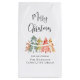 Sac cadeau de vacances d'entreprise élégant pour vos clients et employés avec une aquarelle moderne de pins de couleur vert sauge, rouge, or et terre cuite, "Joyeux Noël" dans un script stylisé et le nom de votre entreprise en typographie simple.