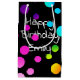 Joyeux texte d'anniversaire avec nom personnel et pois néon sur arrière - plan noir. La couleur Arrière - plan peut être modifiée. Le nom est modifiable ou peut être supprimé.
